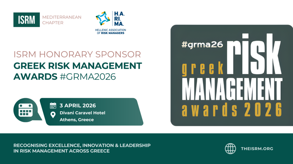 The Institute of Strategic Risk Management (ISRM) is pleased to confirm its Honorary Sponsorship of the 1st Greek Risk Management Awards, organised by the Hellenic Association of Risk Managers (HARIMA). The 1st Greek Risk Management Awards 2026 will take place: đź“… Date: 3 April 2026 đź•– Time: 7:00 pm – 10:30 pm 📍 Venue: Divani […]